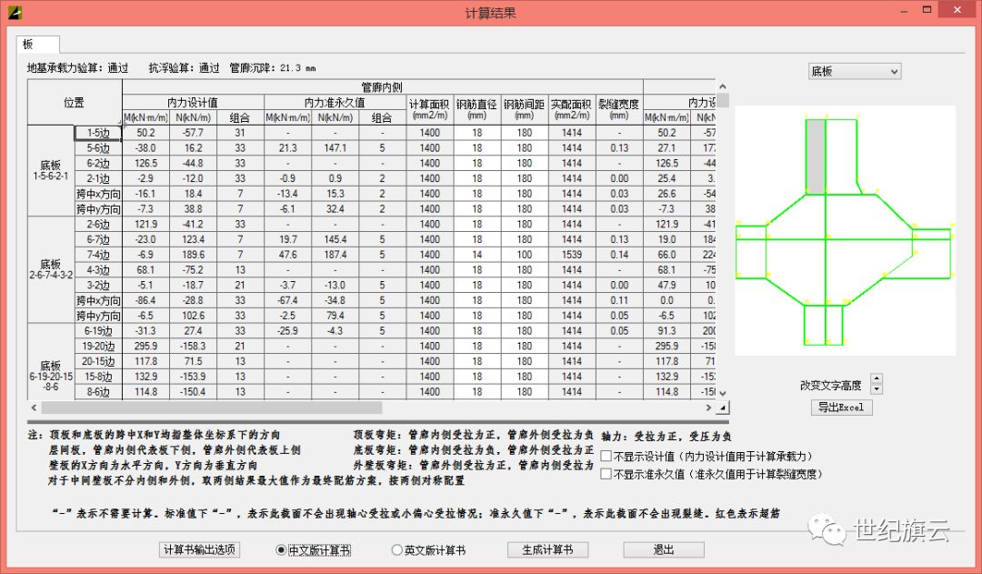 世纪旗云地下管廊结构设计软件是一款结合国家相关规范和图集开发的地下管廊结构设计软件,具有以下特点: