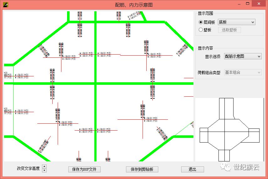 根据内力,程序能自动根据中国混凝土规范对壁板、底板、顶板、扶壁柱、立柱等进行配筋设计。