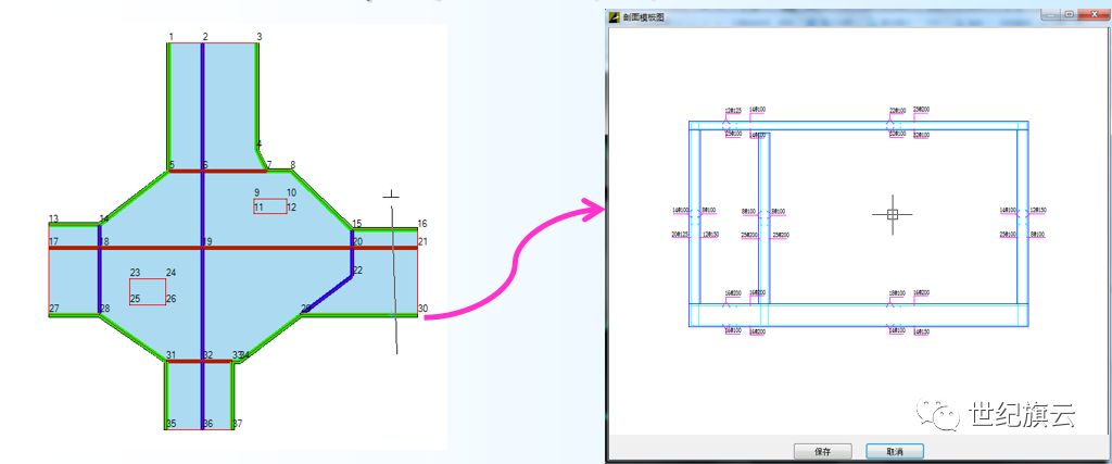 生成地下管廊壁板的剖面模板图,顶板、底板模板图等。